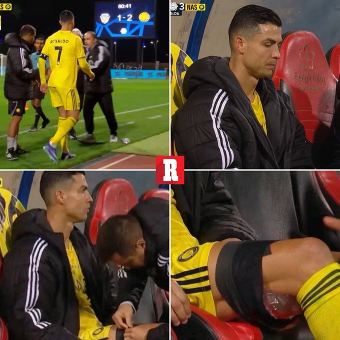 今天凌晨,利雅得胜利在客场3-1战胜费哈,C罗在比赛第81分钟因身体不适被换下,下场后他被拍到坐在替补席上,表情明显感到疼痛,并在受影响的部位敷上了冰袋。